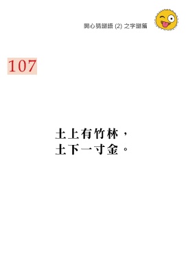 開心猜謎語 (2) 之字謎篇 107 土上有竹林, 土下一寸金。