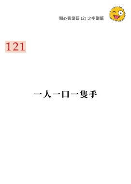開心猜謎語 (2) 之字謎篇 121 一人一口一隻手