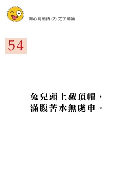 開心猜謎語 (2) 之字謎篇 54 兔兒頭上戴頂帽, 滿腹苦水無處申。