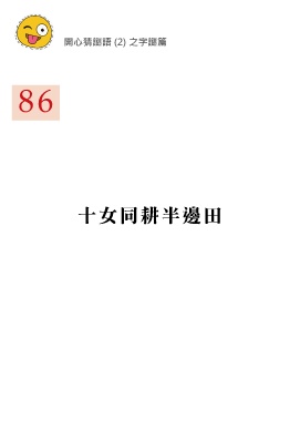 開心猜謎語 (2) 之字謎篇 86 十女同耕半邊田